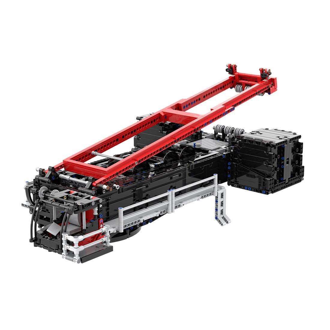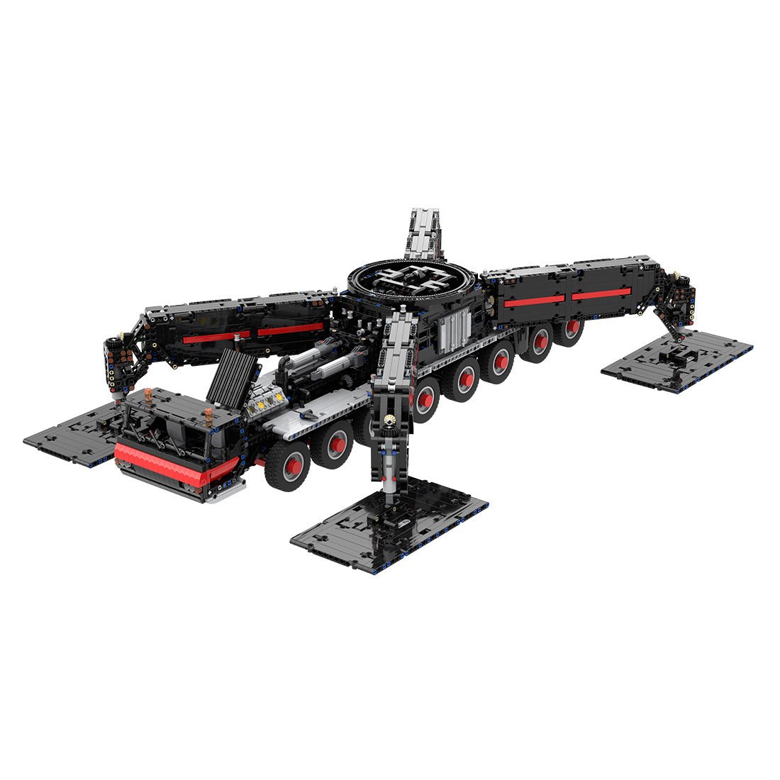 Contains 12,135 pieces weighing about 13,000g. The unfolded size of this model is: L140cm × W70cm × H310cm. It includes multiple power accessories. This model can move the chassis forward and backward, steer, extend the support legs, raise, lower, expand and contract, control 5 winches, rotate the table, expand and contract the counterweight, raise and lower the counterweight, etc.