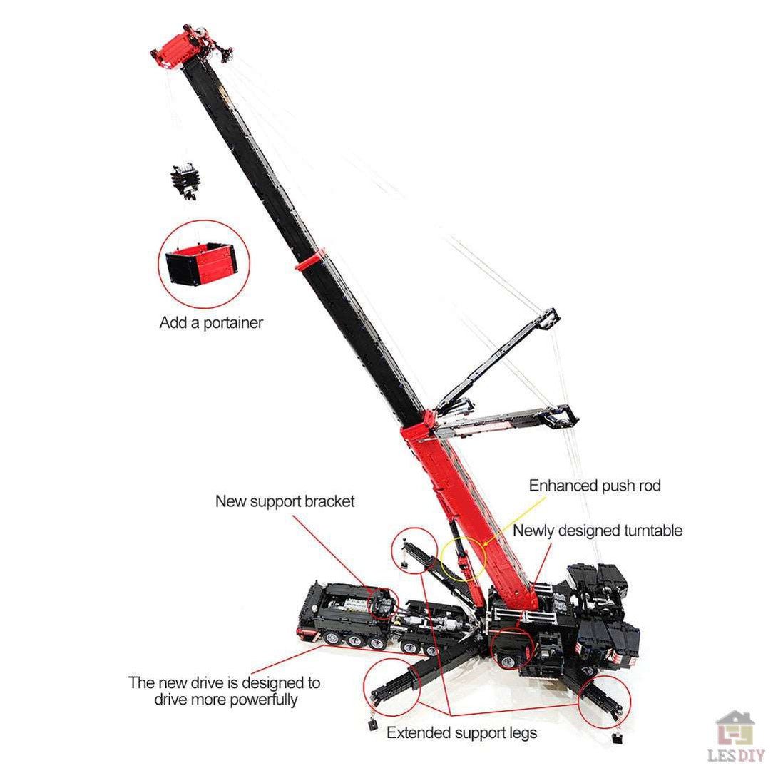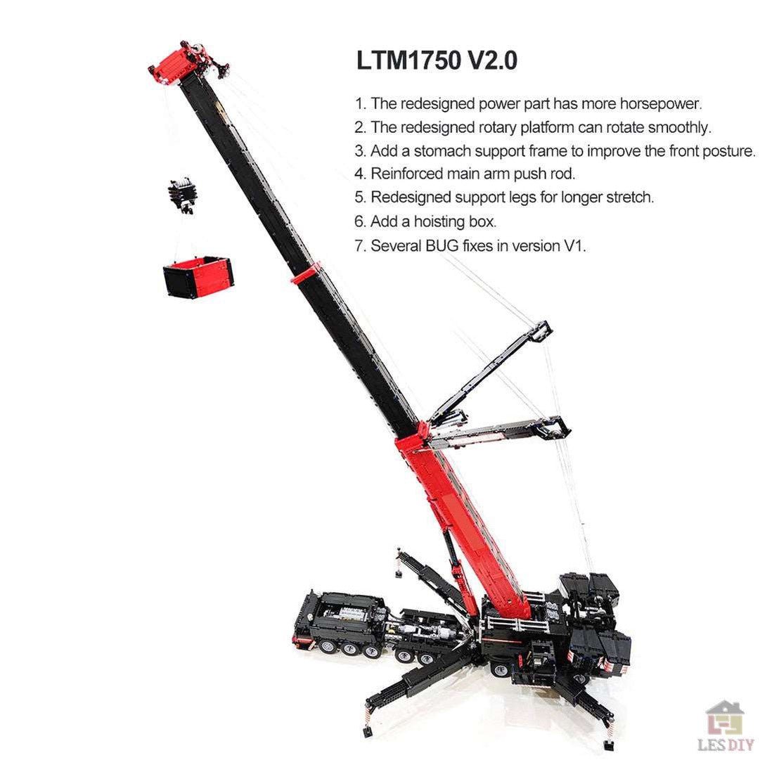 - New support frame with large arm, improved main arm push rod, redesigned support leg for longer extension, added a new lifting box, V1 version fixed a number of bugs. This is the best large block crane in the world.