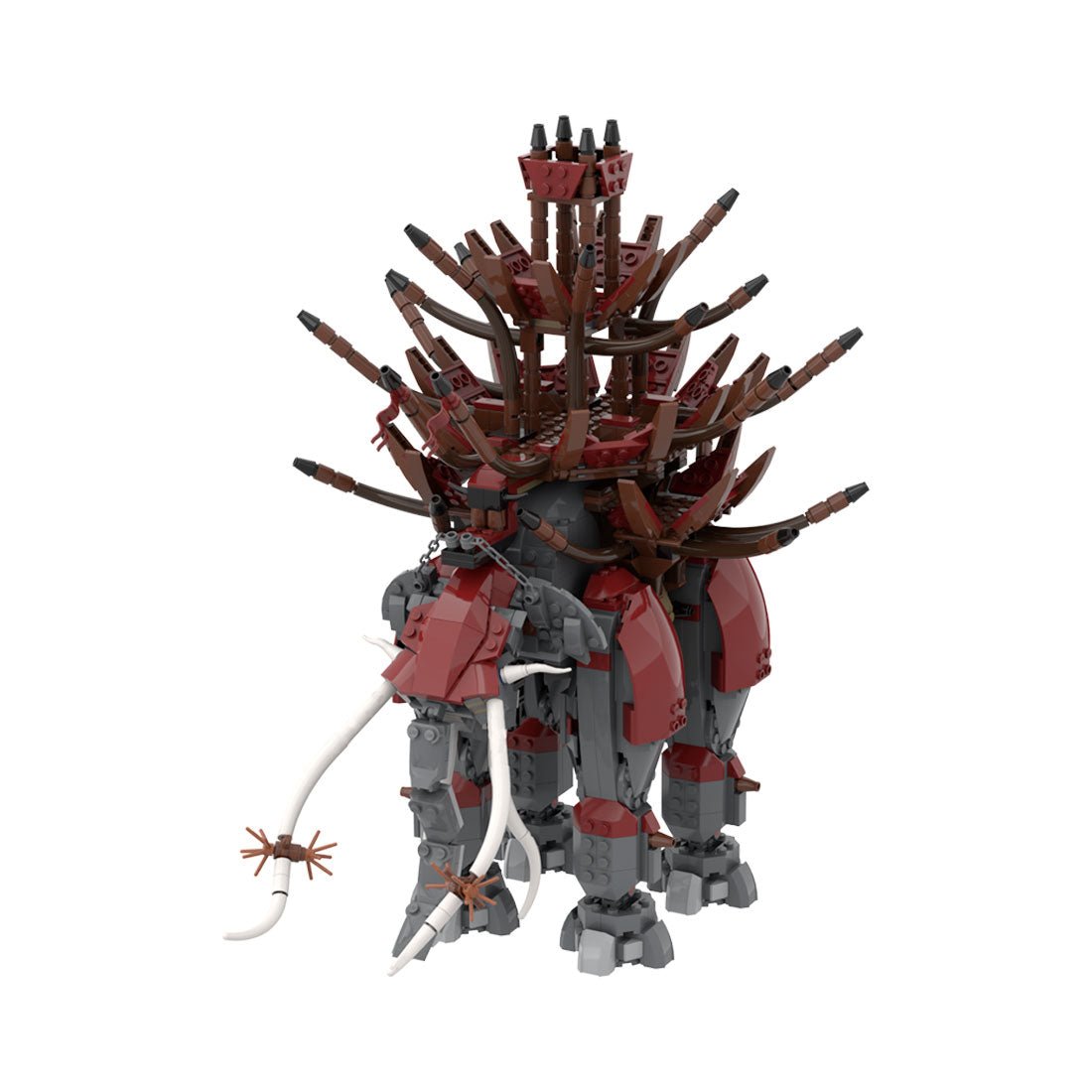 Dieses von brickMocLoc entworfene und lizenzierte Produkt verfügt über ein einzigartiges Gerüst und einen massiven Kriegsturm auf dem Rücken, auf dem Bogenschützen und Speerkämpfer kämpfen können.