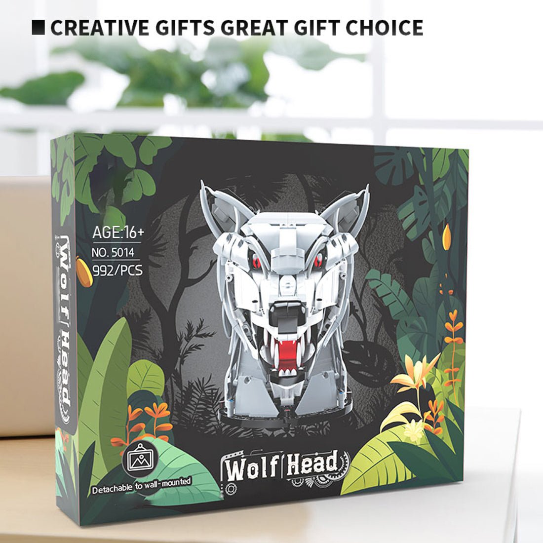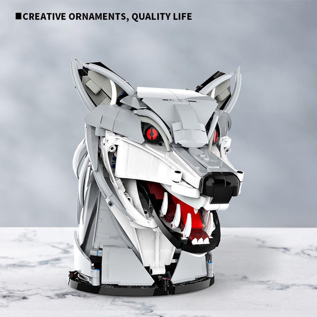 Erleben Sie wolfsgleiche Hartnäckigkeit, Teamwork und Gelegenheitsergreifung mit unserem hochdetaillierten Wolfskopf-Bausteinmodell, das die Essenz des „Wolfsgeistes“ einfängt.