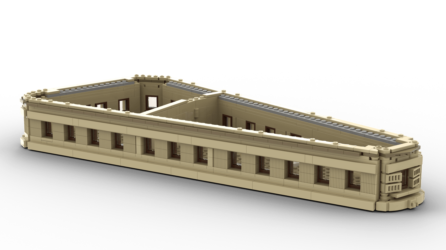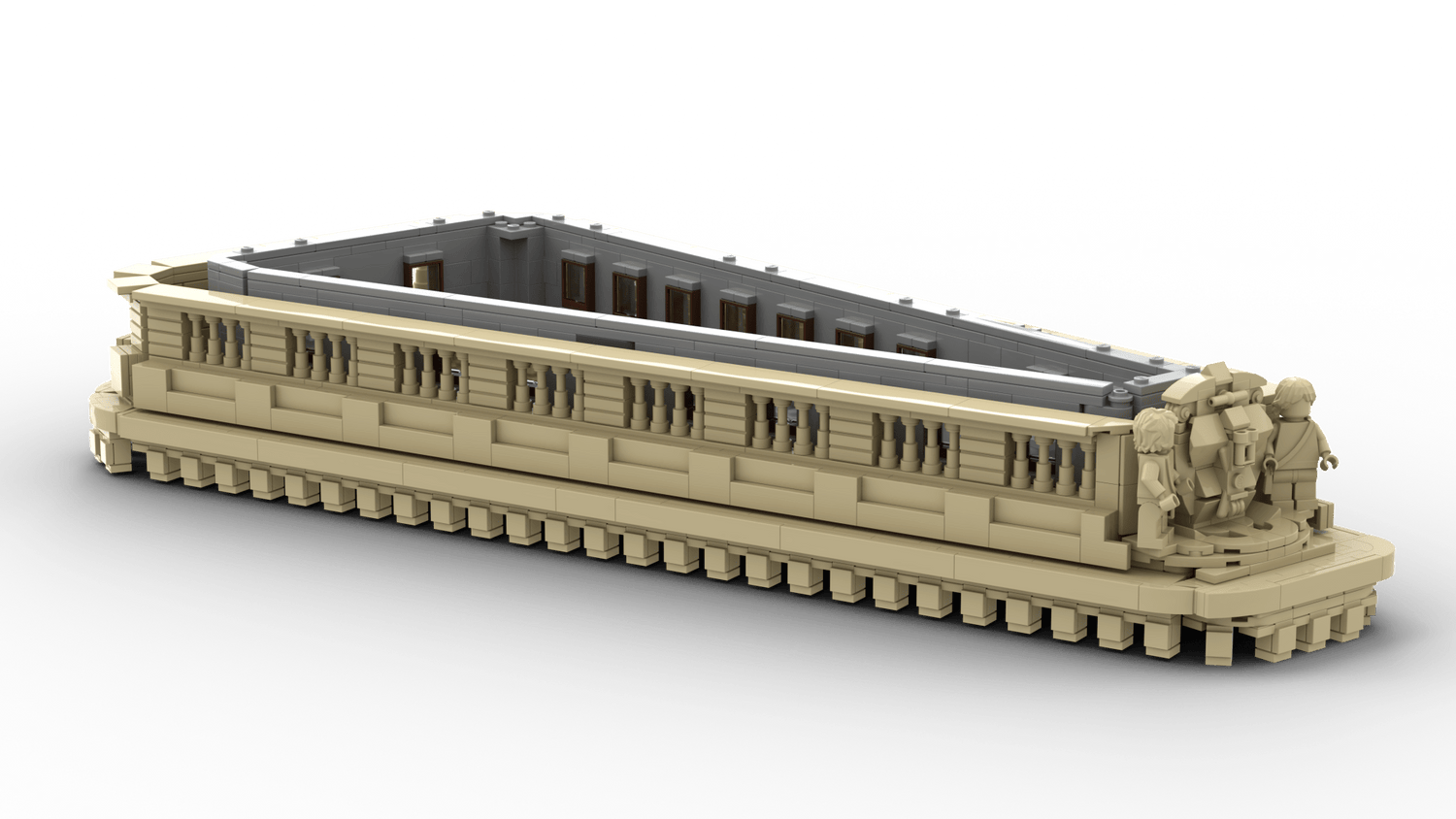 Triangular base with authentic exterior details.