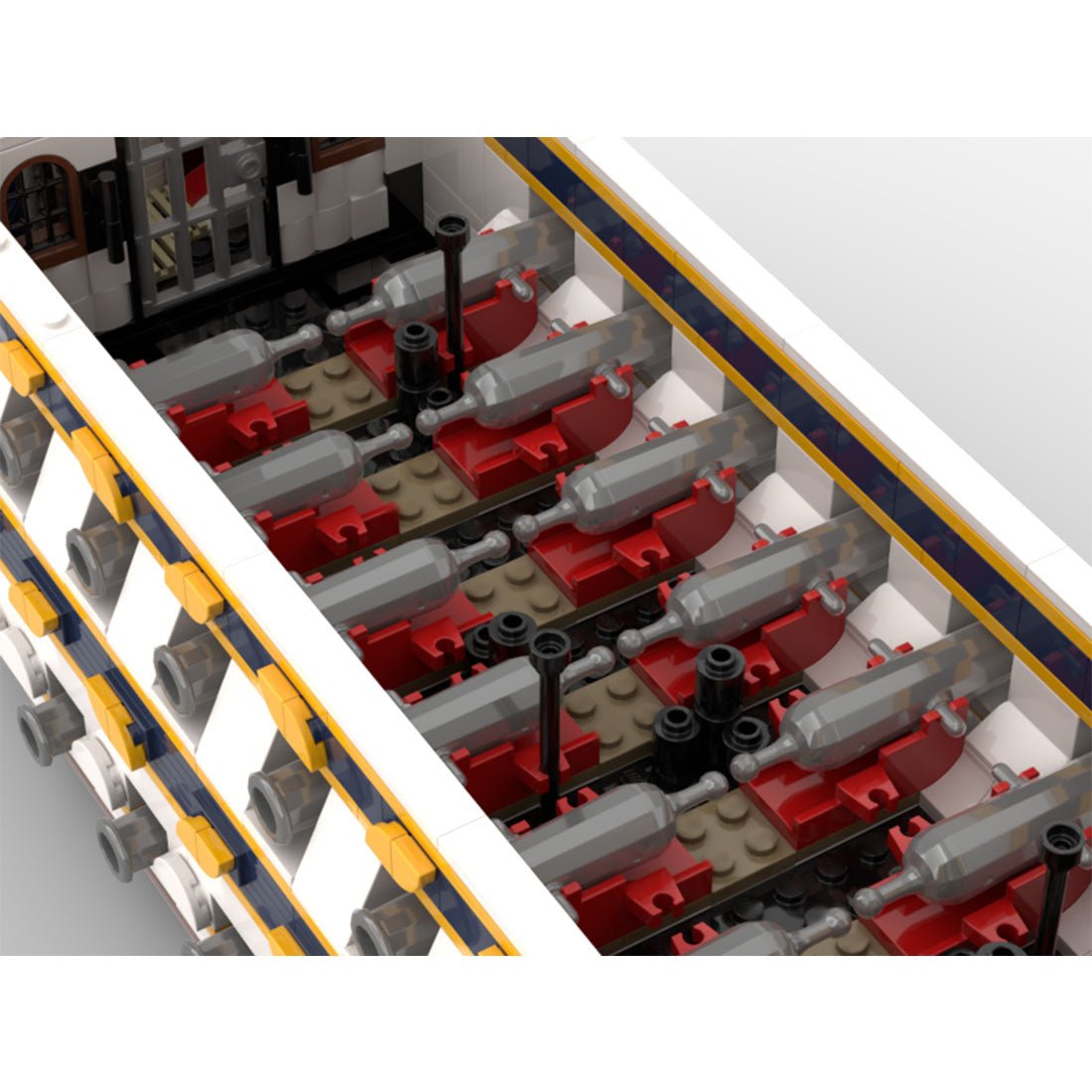 - Dieses von Mikey_Brickalloti autorisierte Modell ist vom klassischen Schlachtschiff aus dem berühmten Piratenfilm inspiriert. Der Bug des Schiffes zeigt einen riesigen Oktopus, der die große Kampfkraft des Schiffes unterstreicht. Dann gibt es auf beiden Seiten des Schiffes zwei Reihen Kanonen, sieben in jeder Reihe, mit voller Feuerkraft. Die drei riesigen Masten, die in die Wolken ragen, die im Wind flatternde Flagge und die gelbe Farbgebung des Kriegsschiffs zeigen, dass es sich hier um ein echtes Flaggschiff handelt, das die Wellen beherrscht! Lassen Sie uns gemeinsam in das Zeitalter der Seereisen eintreten!
